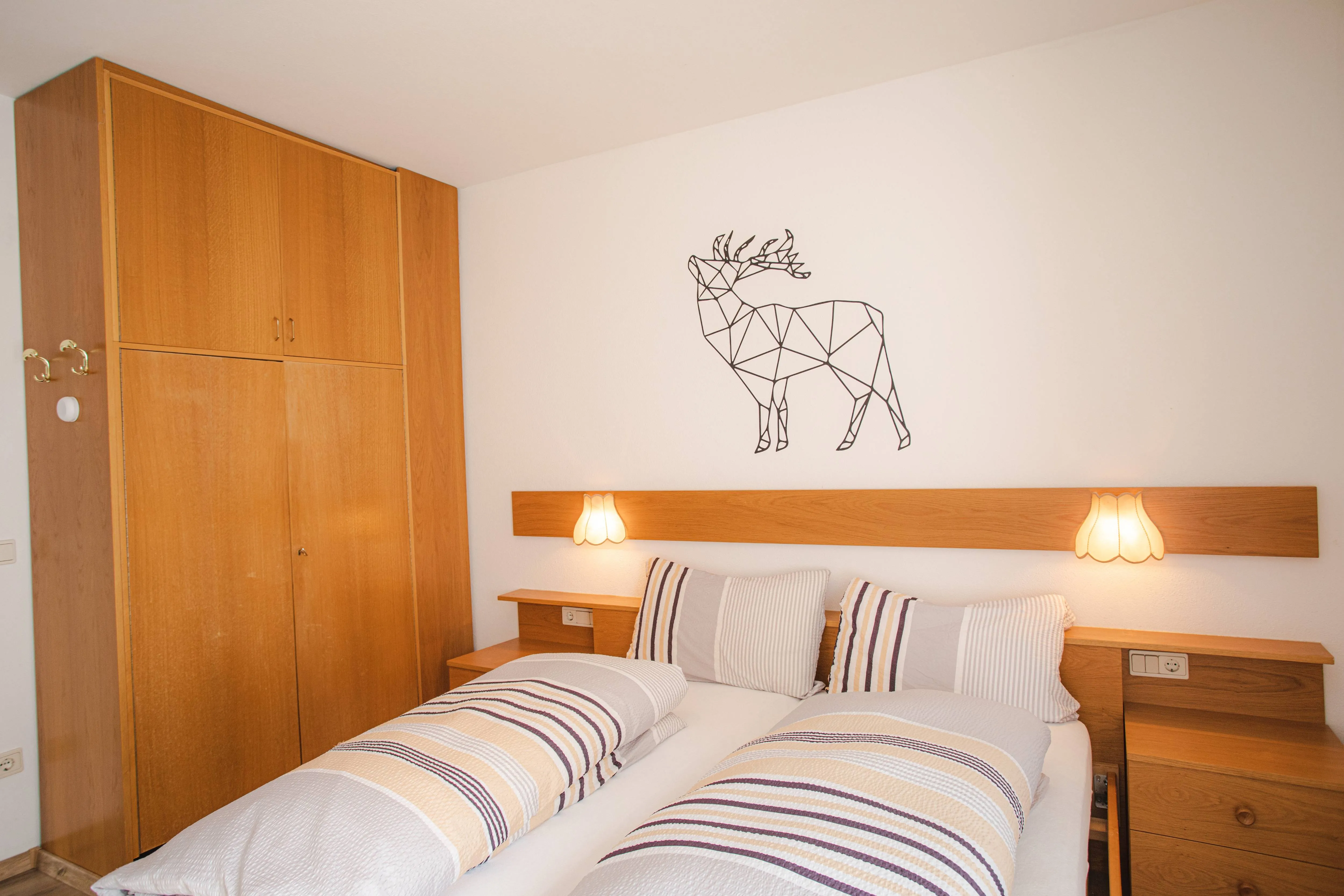 Komfortables Zimmer mit Dusche, WC und Balkon mit Schön-Blick. Auch als Einzel- oder Vierbettzimmer. Ideal für Wanderer, Gipfelstürmer oder Ruhe-Suchende.